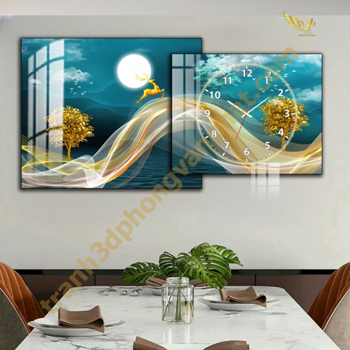 1 BỘ GỒM : 2 Sản Phẩm 1 tranh D40cm,50cm,60cm + 1 đồng hồ D30,D35,D40cm, kim trôi không ồn. máy đồng hồ 1 đổi 1 trong vòng 12thang nếu có hư hỏng lỗi kỹ thuật